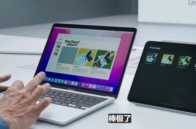 接下来是Mac OS,新版本Mac OS叫做Monterey,同样支持前文说的SharePlay功能、专注模式、快速备忘录等等,苹果还推出了Universal Control功能,可实现一套键鼠在不同设备上操作,比如你的MacBook和iPad连屏时,可使用MacBook触控板操控iPad。四舍五入说就是剩下了一套秒控键盘的钱呢!这个功能支持两台以及以上设备,你的iMac、MacBook和iPAd都可以三屏协作了。